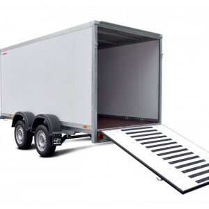 Промтоварный двухосный фургон с аппарелью (кузов: 7,9 м3) Технические характеристики: Полная масса 750 кг Грузоподъемность 274 кг Снаряжённая масса 476