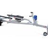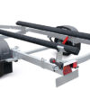 ● Передвижные ложементы могут быть установлены в любой точке поперечен рамы, имеют регулируемый угол наклона и регулируемую высоту. Это позволяет установить их в наиболее удобное положение под угол килеватости судна, избежать давления на продольные реданы, а также расположить судно максимально низко, тем самым обеспечить устойчивость прицепа при движении и осуществлять спуск судна на воду меньшей глубине. При перевозках и хранении судна на прицепе ложементы позволяют равномерно распределить вес техники и уменьшить давление на корпус судна.