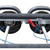 ● Ложементы могут быть установлены в любой точке поперечин рамы, имеют регулируемый угол наклона и регулируемую высоту. Это позволяет установить их в наиболее удобное положение, избежать давления на продольные реданы, а также расположить технику максимально низко, тем самым обеспечить устойчивость прицепа при движении и осуществлять спуск судна на воду меньшей глубине. При перевозках и хранении судна на прицепе ложементы позволяют равномерно распределить вес техники и уменьшить давление на корпус судна.