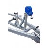 ● Ложементы могут быть установлены в любой точке поперечин рамы, имеют регулируемый угол наклона и регулируемую высоту. Это позволяет установить их в наиболее удобное положение, избежать давления на продольные реданы, а также расположить технику максимально низко, тем самым обеспечить устойчивость прицепа при движении и осуществлять спуск судна на воду при меньшей глубине. При перевозках и хранении судна на прицепе ложементы позволяют равномерно распределить вес и уменьшить давление на корпус судна.